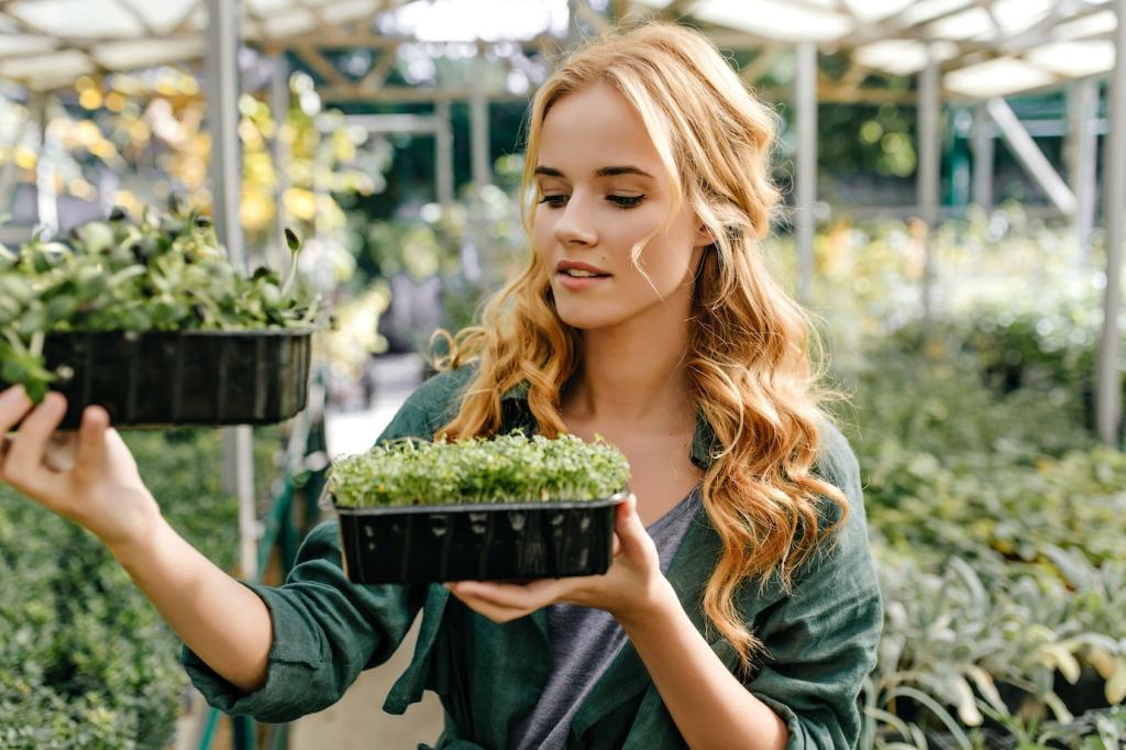 Use mirrors or light-colored walls to bounce brightness without buying extra lamps. Sheer curtains soften harsh rays while protecting leaves. Arrange plant clusters to share favorable light, like a cooperative canopy. These quiet adjustments reduce energy use and support a balanced, low-waste indoor biome that feels thoughtfully composed.
